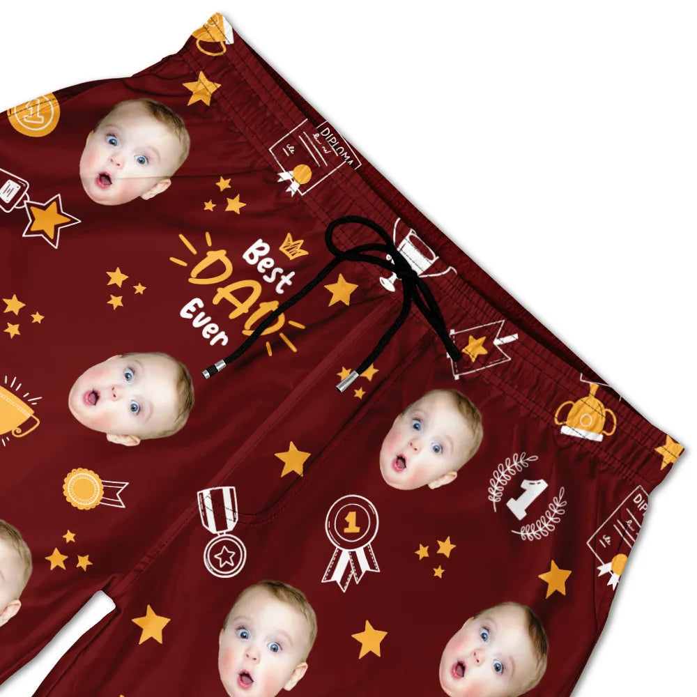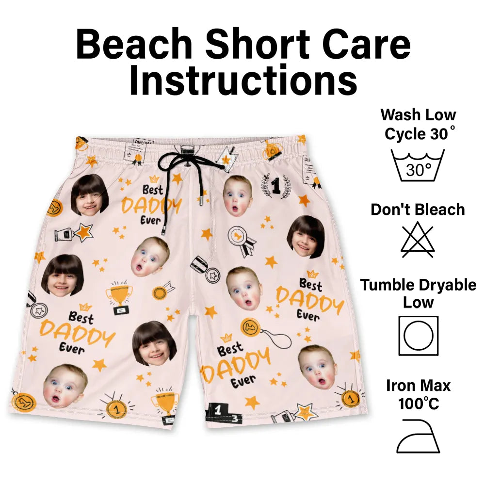 Custom Photo Best Papa Ever Trophy Dad - Personalized Unisex Beach Shorts