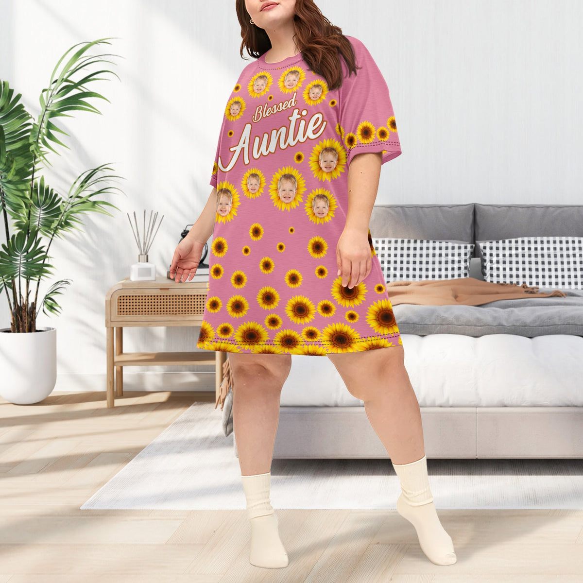 Custom Photo Blessed Mommy Grandma - Gift For Mother, Nana, Auntie - Personalized Women's Sleep Tee