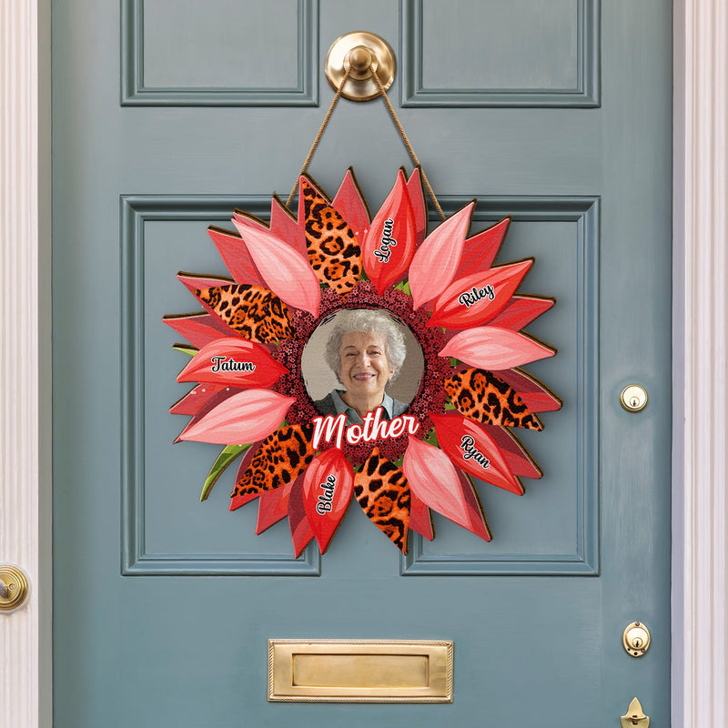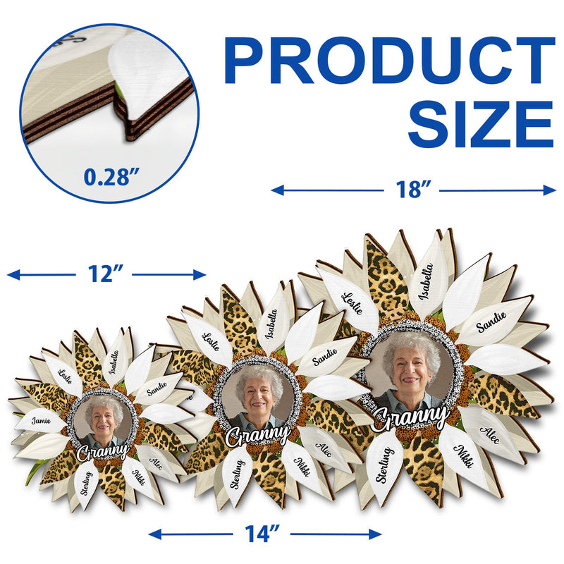 Custom Photo Nana, Mom, Auntie Family Sunflower - Birthday, Loving Gift For Mother, Grandma, Grandmother - Personalized Custom Shaped Wood Sign