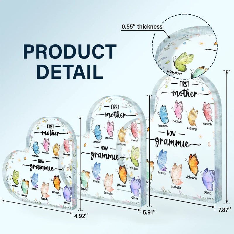 First Mom Now Grandma Butterfly - Personalized Heart Shaped Acrylic Plaque