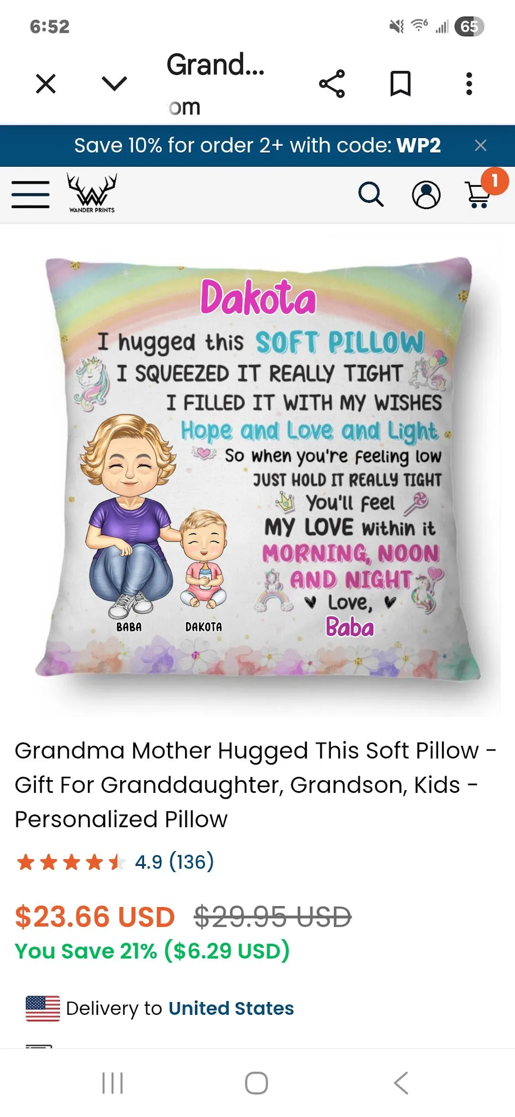 Grandma Mother Hugged This Soft Pillow - Gift For Granddaughter, Grandson, Kids - Personalized Pillow