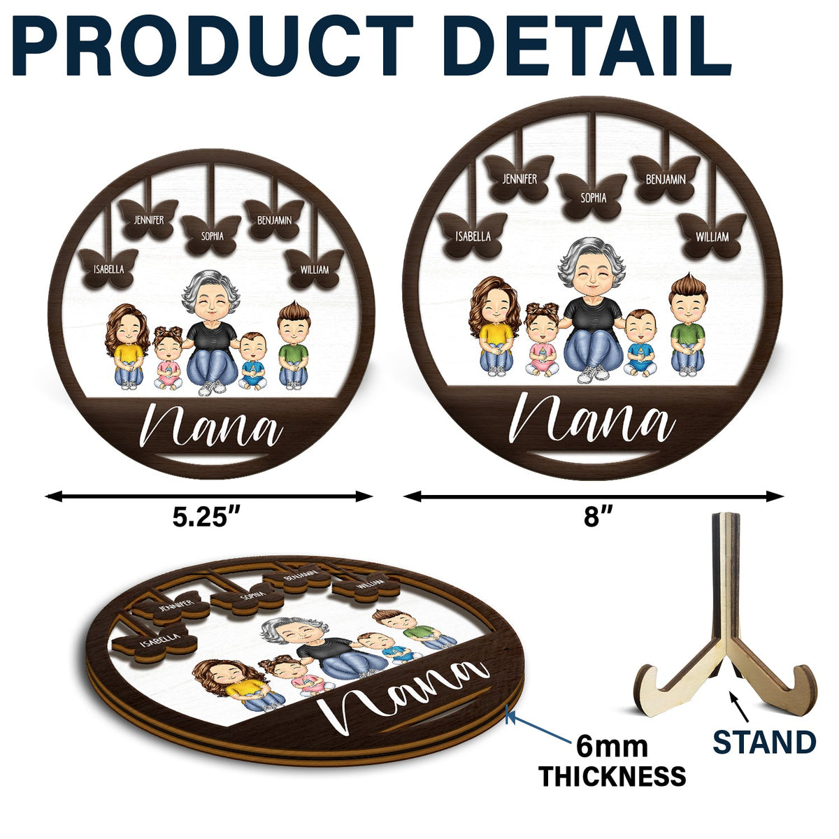 Grandma Mom Grandkids Kids Butterflies - Gift For Mother, Grandmother - Personalized 2-Layered Wooden Plaque With Stand