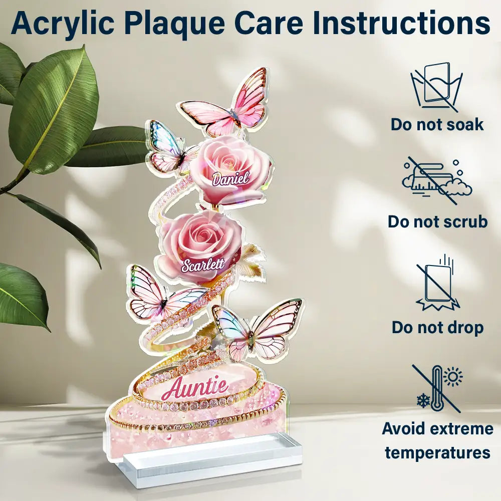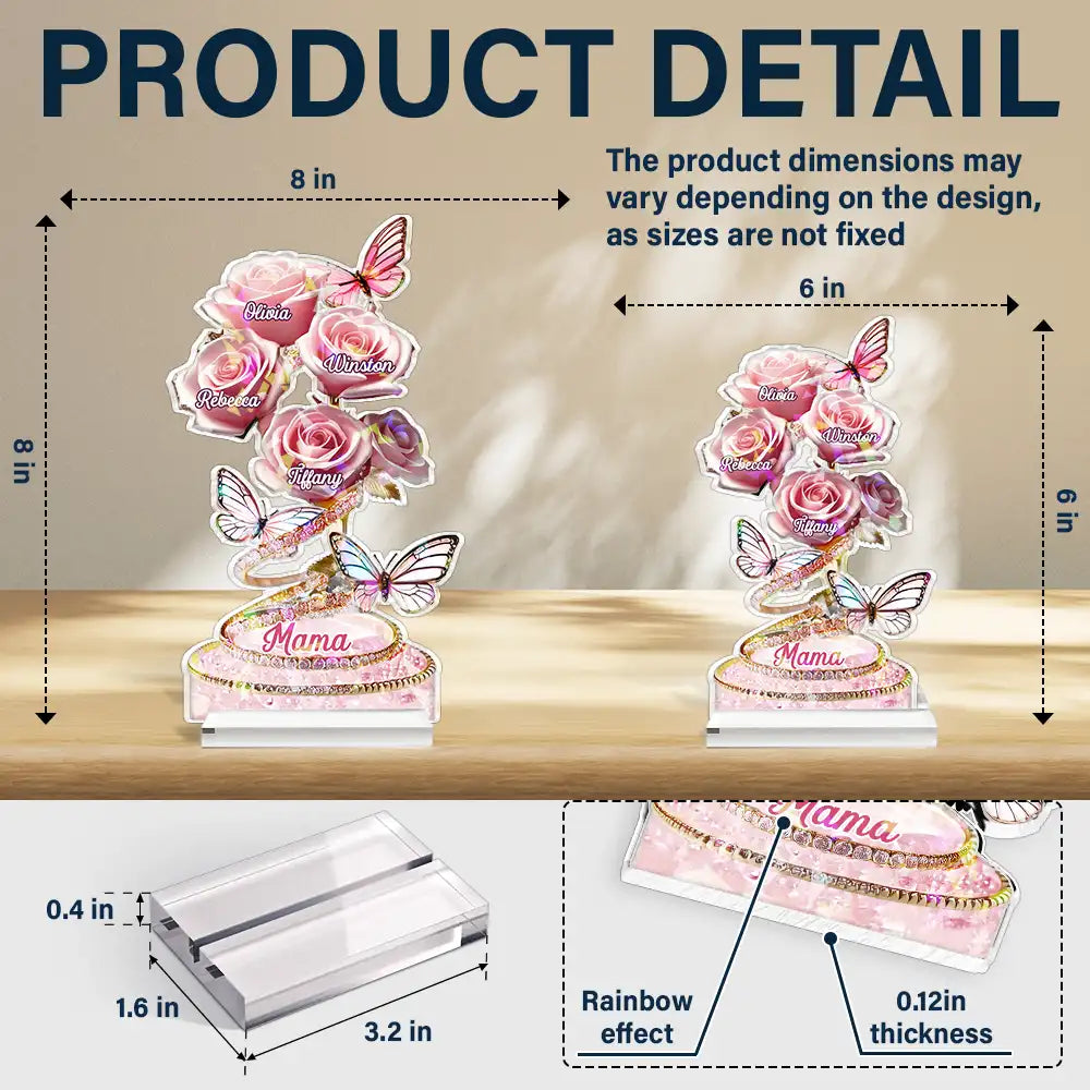 Handpicked Just For Mom Grandma 3D Crystal Effect Roses - Personalized Holographic Acrylic Plaque