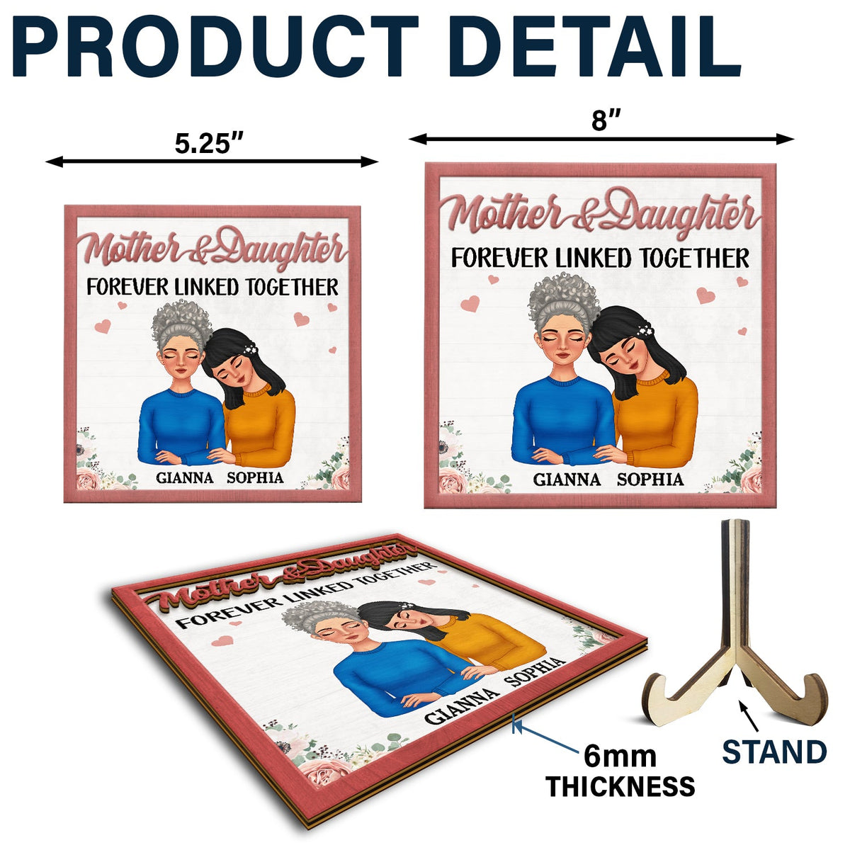 Mother And Daughters Forever Linked Together Doll Face - Gift For Mom, Mother, Grandma - Personalized 2-Layered Wooden Plaque With Stand