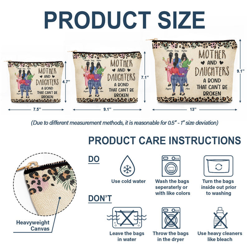 Mother & Daughter A Bond That Can't Be Broken - Gift For Mom, Mother, Grandma - Personalized Cosmetic Bag