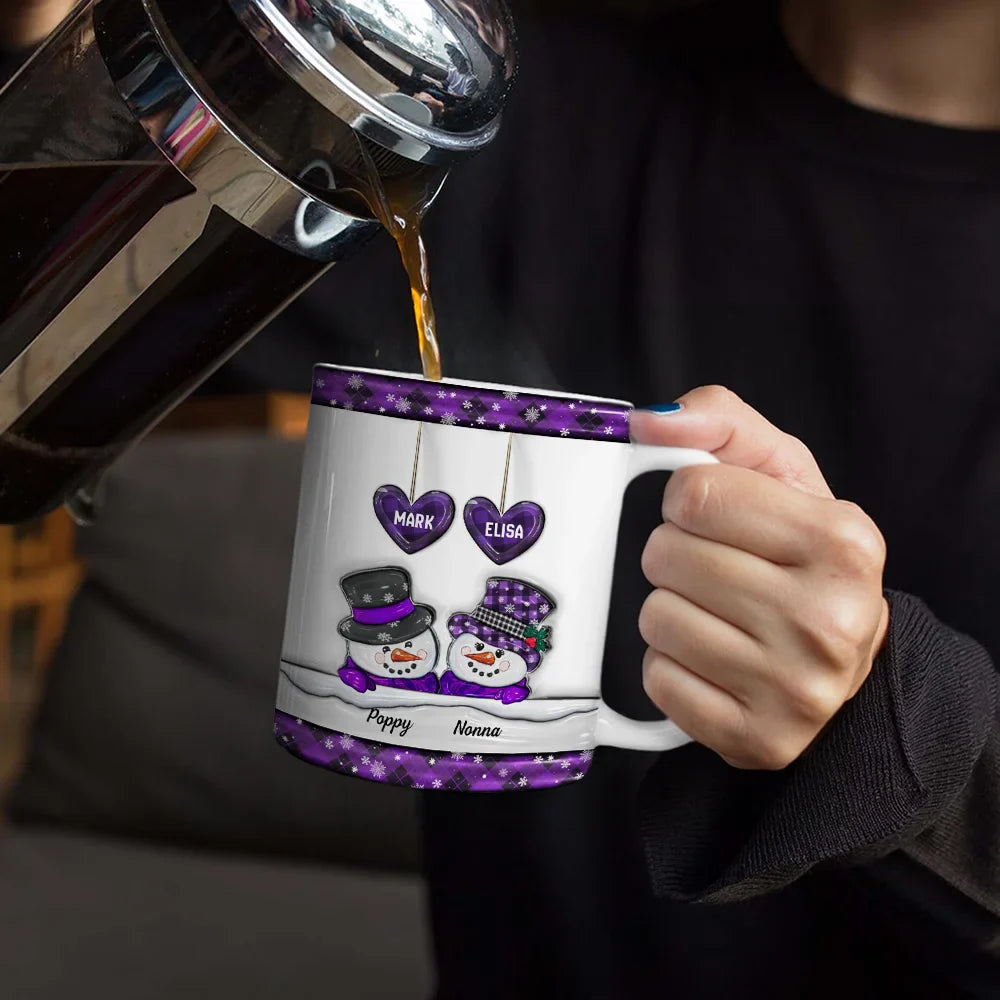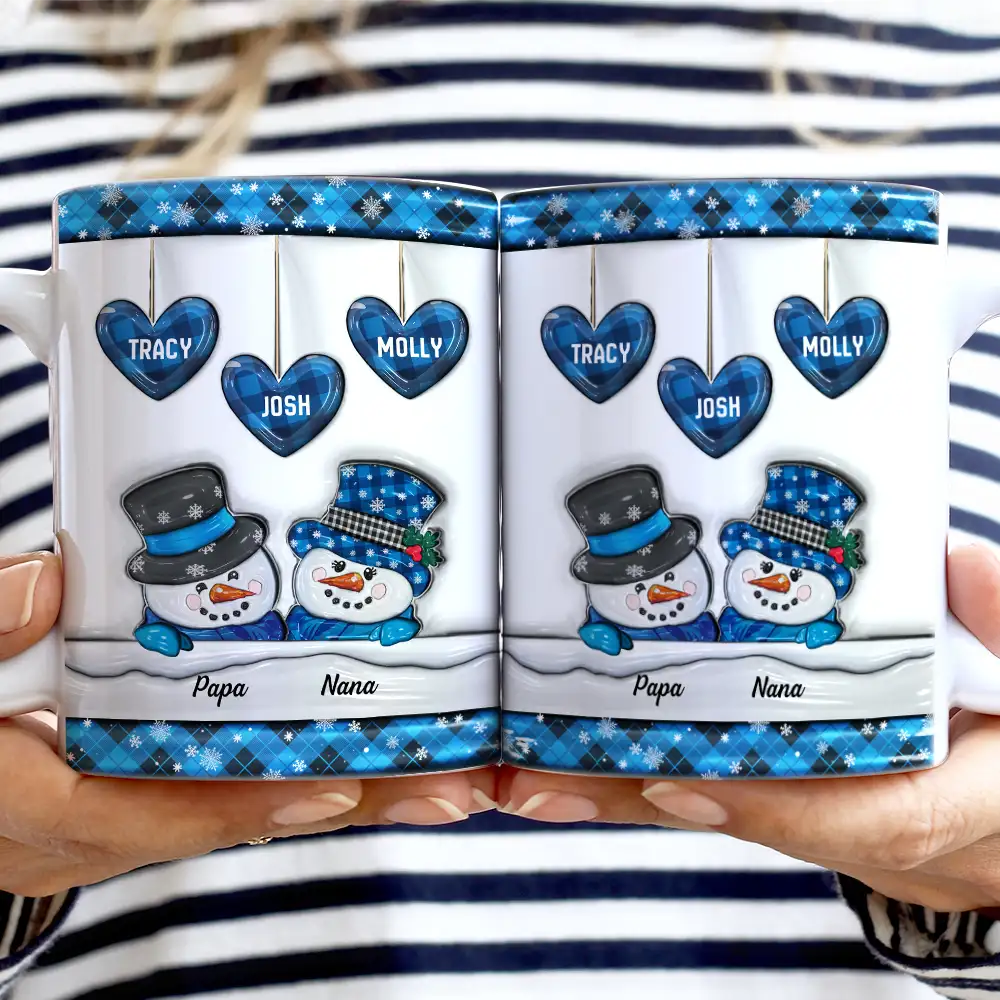 Papa Nana Snowman Christmas Grandparents - 3D Inflated Effect Printed Mug, Personalized White Edge-to-Edge Mug