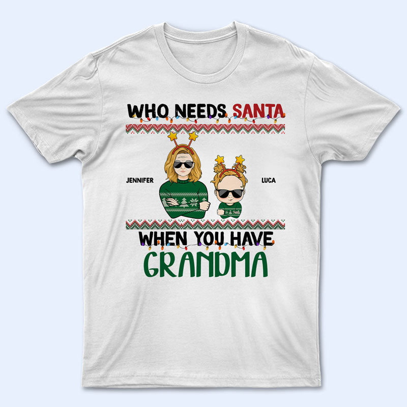 Who Needs Santa When You Have Grandma Grandpa - Christmas Gift For Grandkid - Personalized Custom T Shirt