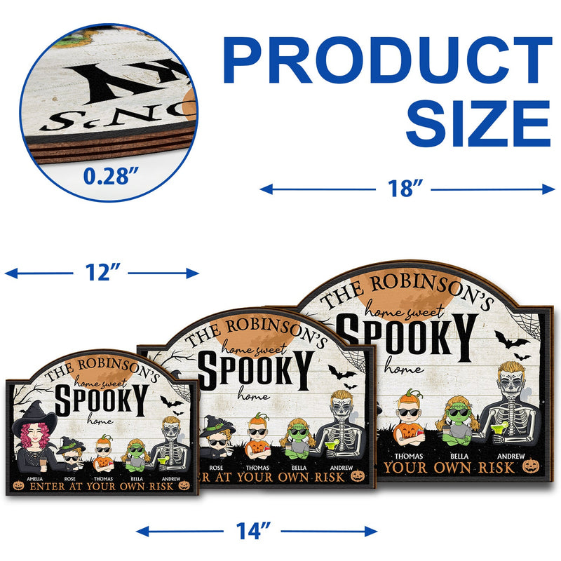 Home Haunted Home Enter At Your Own Risk - Halloween, Birthday, Home Warming, Funny Gift For Couples, Mom, Dad, Family - Personalized Custom Shaped Wood Sign