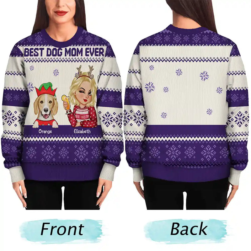 Best Dog Mom Ever Christmas - Personalized Unisex Ugly Sweater