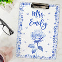 Birth Flower Chinoiserie Toile Art - Personalized Acrylic Clipboard