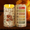 Stained Glass Birth Flower Mosaic Art God Says I Am - Personalized Flameless LED Candle