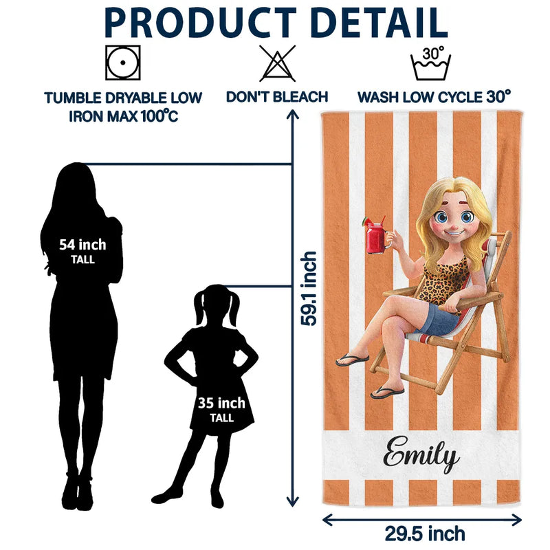 Customizable with your cartoon avatar, this towel adds personality to every trip. Soft, lightweight, and absorbent, it's your perfect companion for swimming, sunbathing, or lounging by the sea.