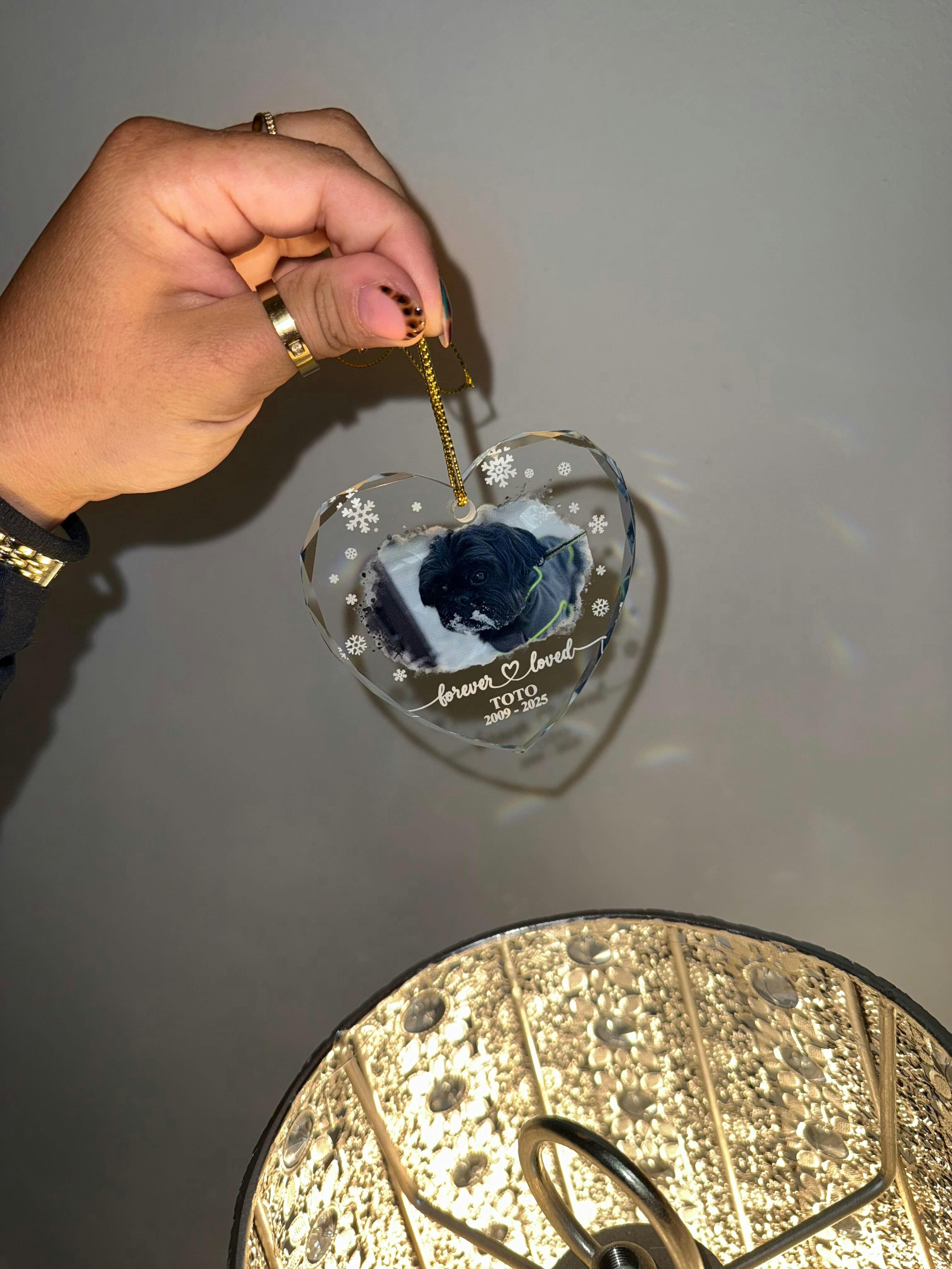 Custom Photo Forever Loved Memorial Dog Cat - Personalized Heart Shaped Glass Ornament