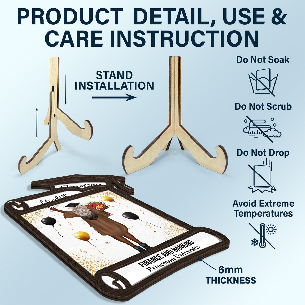 Graduation Appreciation - Graduation Gift For Friends, Family - Personalized 2-Layered Wooden Plaque With Stand