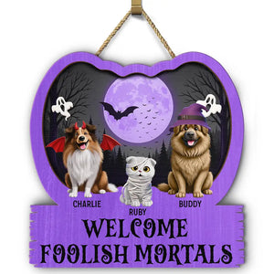 Halloween Pet Welcome Foolish Mortals - Personalized Custom Shaped Wood Sign