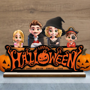 Happy Halloween Family Costume - Personalized Custom Shaped 2-Layered Wooden Plaque