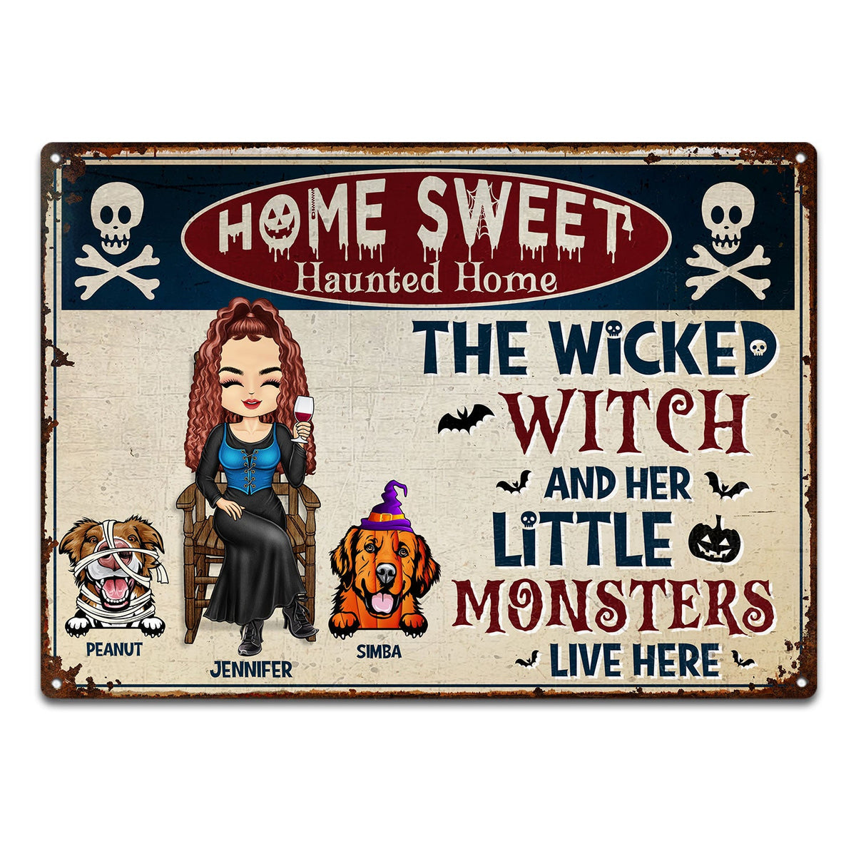 The Wicked Witch And Her Little Monsters Live Here - Backyard Sign, Halloween Home Decor Gift For Dog Lovers - Personalized Classic Metal Signs