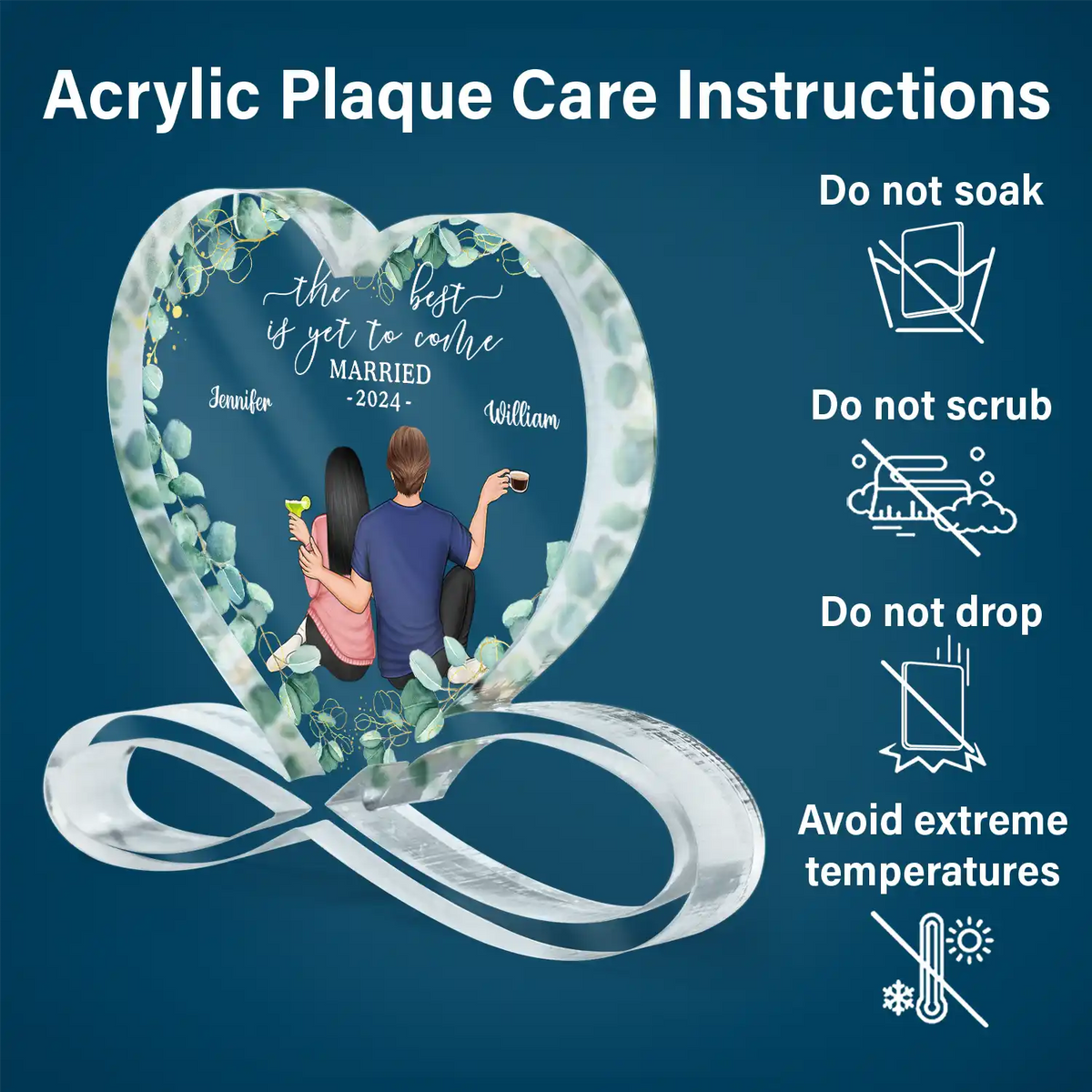 Backside Couple Newly Engaged The Best Is Yet To Come - Personalized Heart Infinity Shaped Acrylic Plaque