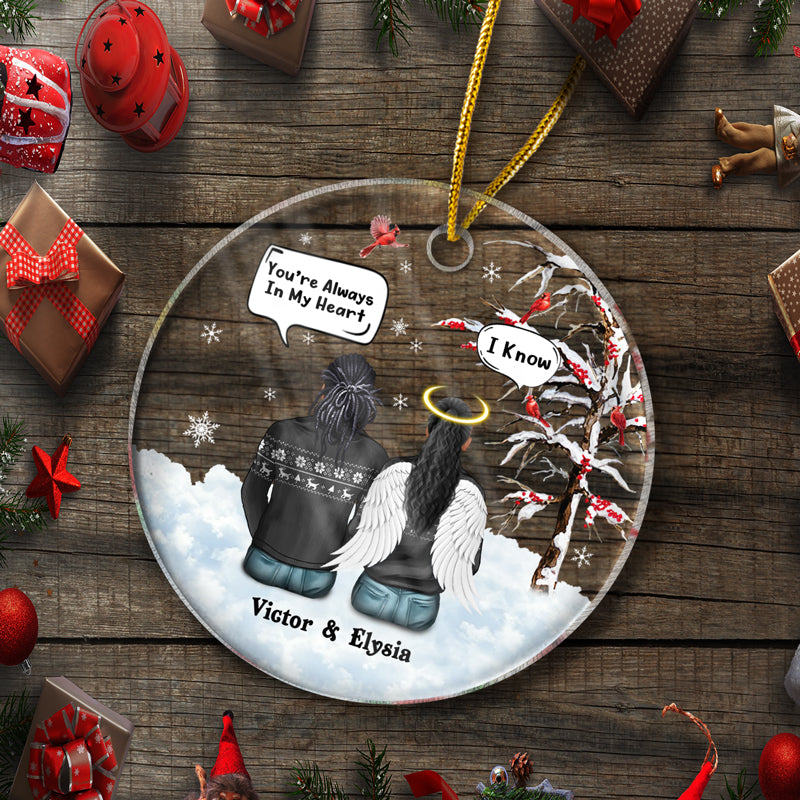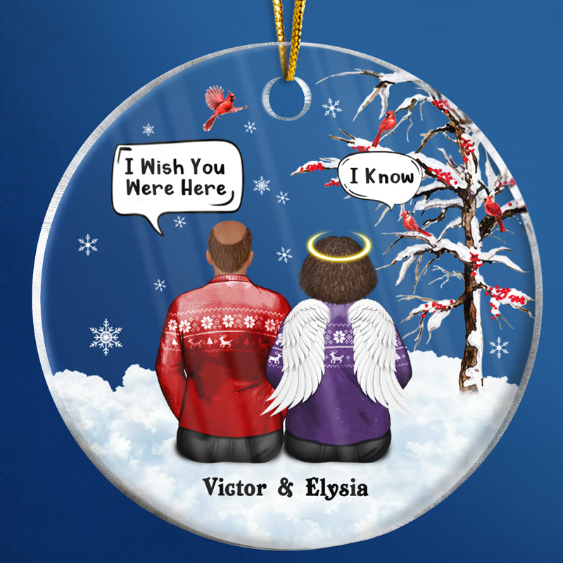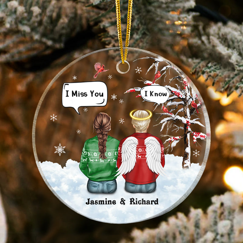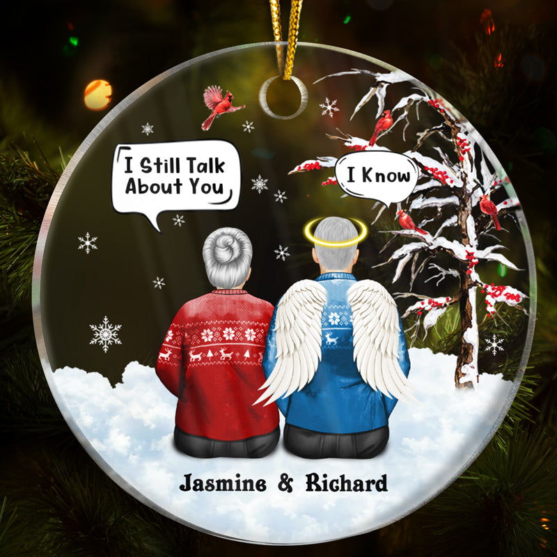 Christmas Memorial Couple Still Talk About You - Personalized Custom Circle Acrylic Ornament