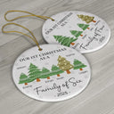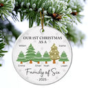 First Christmas As A Family Of Three - Personalized Circle Ceramic Ornament