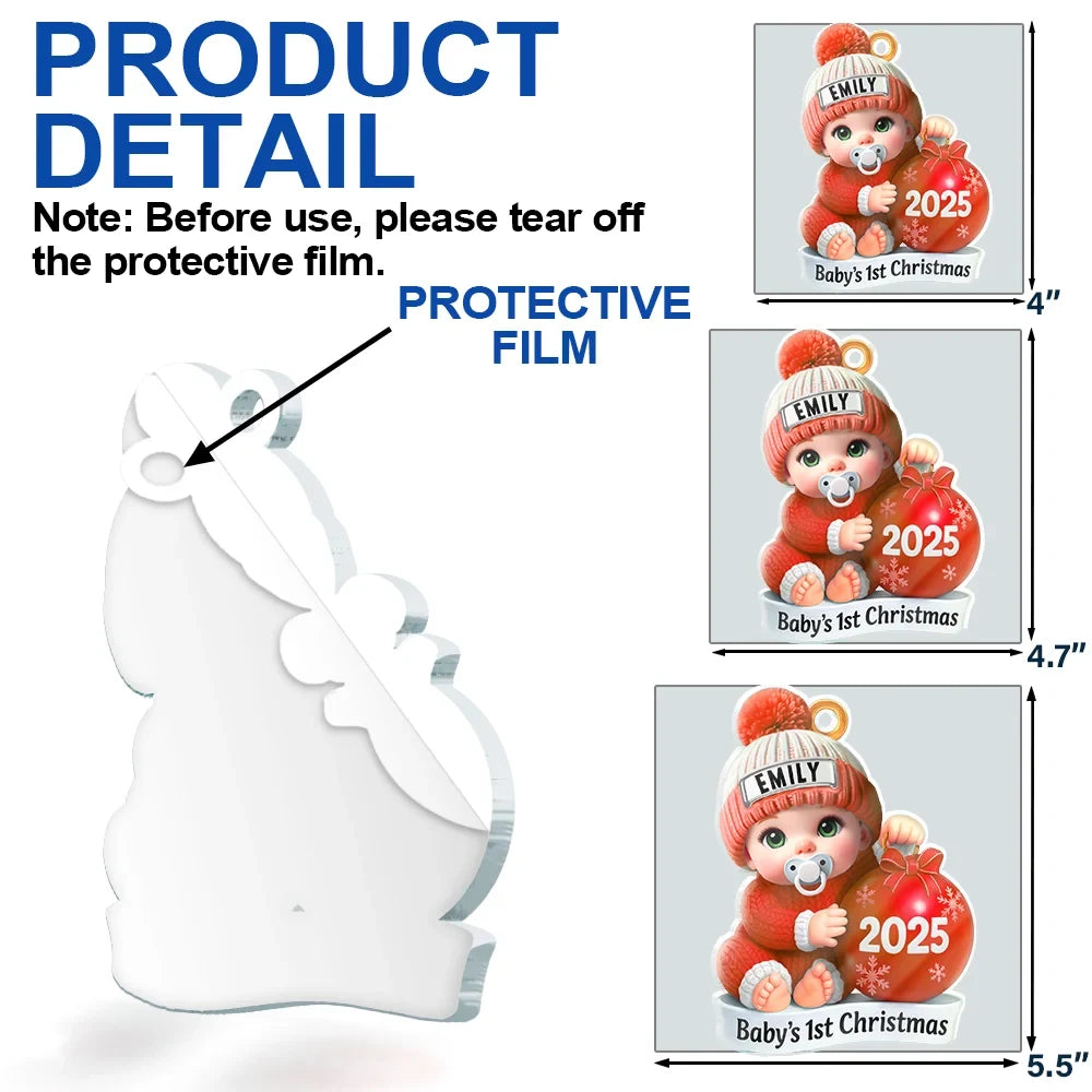 Baby Beside Christmas Bauble First Christmas 3D Effect - Personalized Custom Shaped Acrylic Ornament
