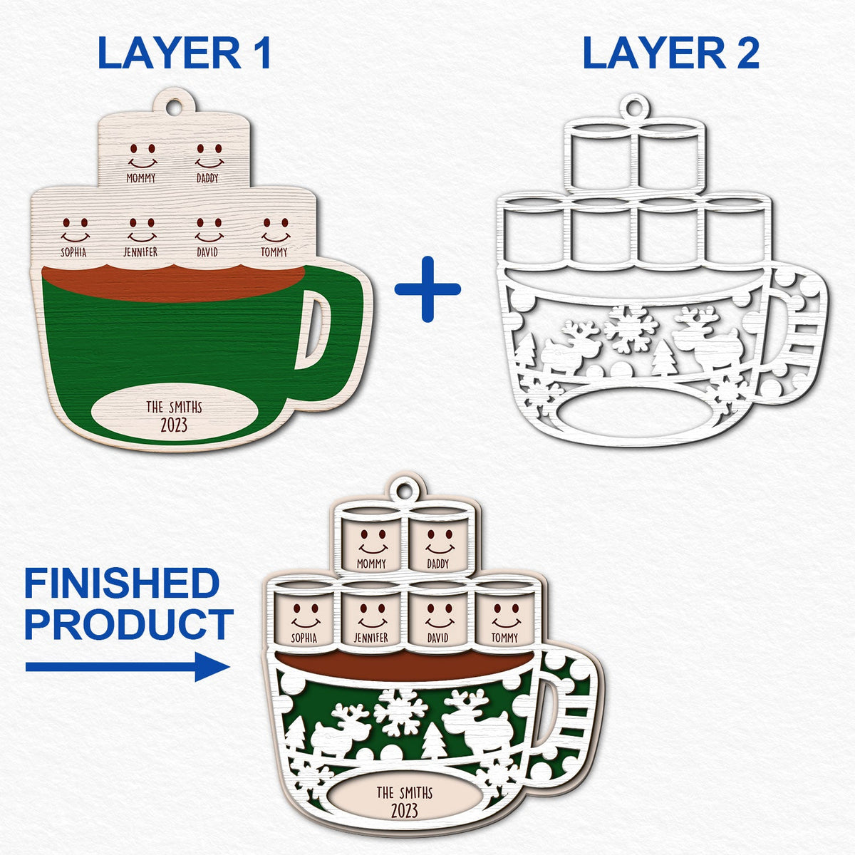 Merry Christmas Hot Chocolate Marshmallows - Christmas Gift For Family, Pet Lovers - Personalized 2-Layered Wooden Ornament