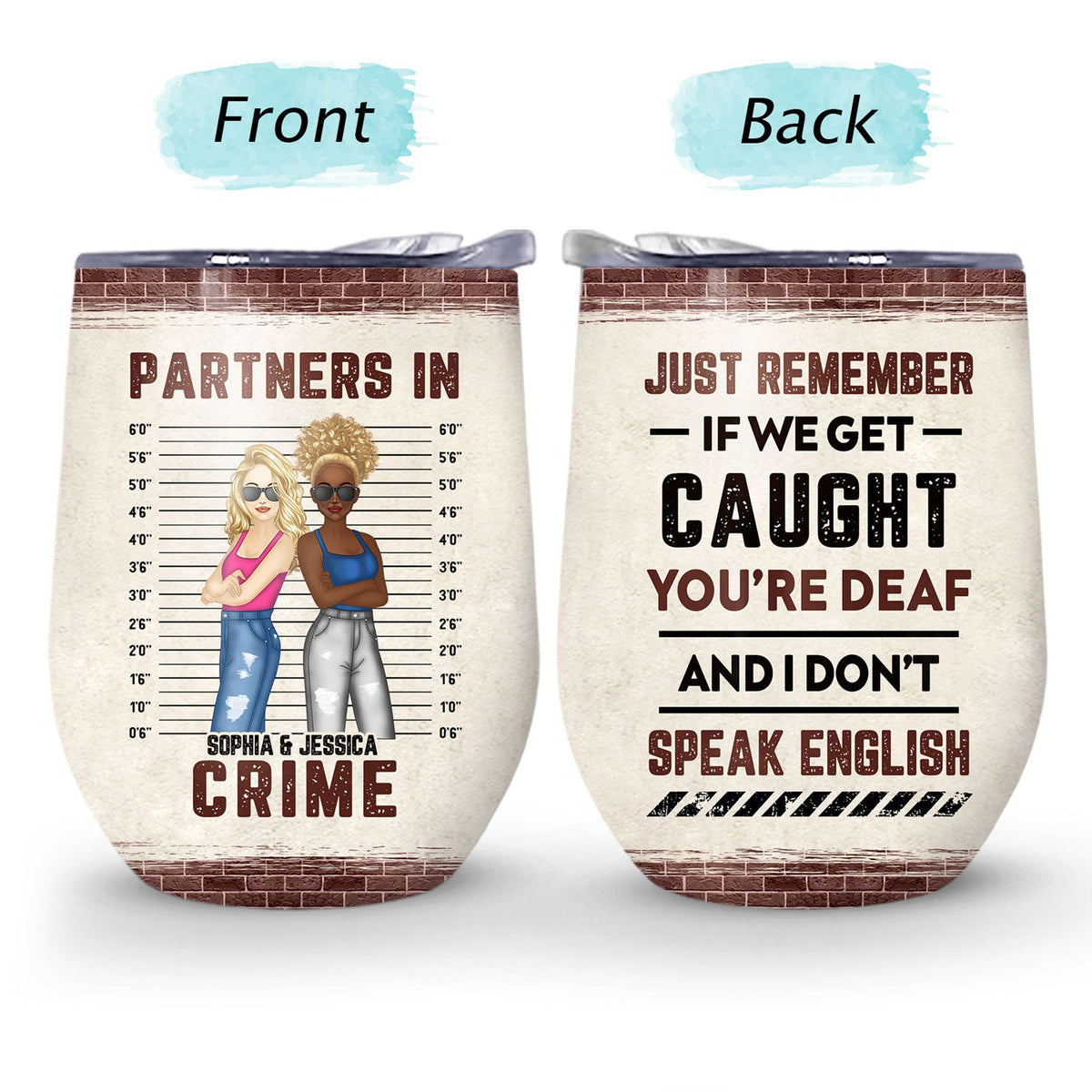 Bestie If We Get Caught Partners In Crime - Personalized Custom Wine Tumbler