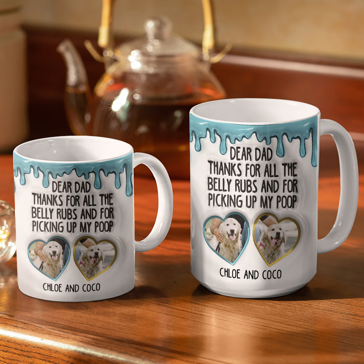 Custom Photo Thanks For All The Belly Rubs - Gift For Dog Dad, Dog Lovers - 3D Inflated Effect Printed Mug, Personalized White Edge-to-Edge Mug
