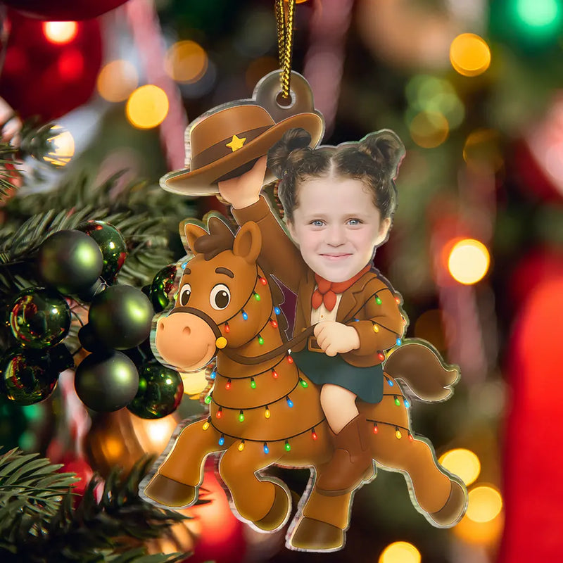 Custom Photo Little Cowboy Kid Boy Kid Girl - Personalized Acrylic Photo Ornament