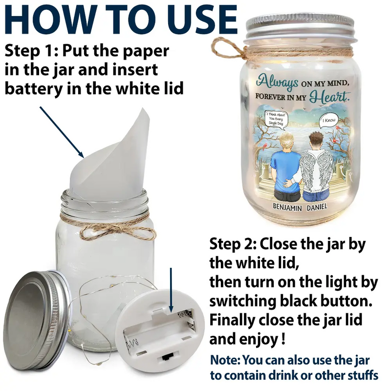Always On My Mind, Forever In My Heart - Personalized Mason Jar Light
