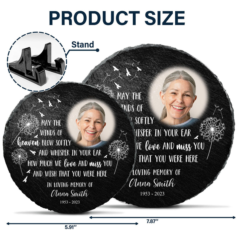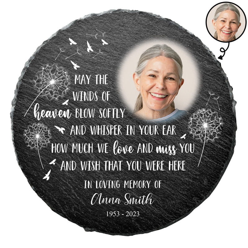 Custom Photo May The Winds Of Heaven Blow Softly - Memorial Gift - Personalized Circle Memorial Garden Stone