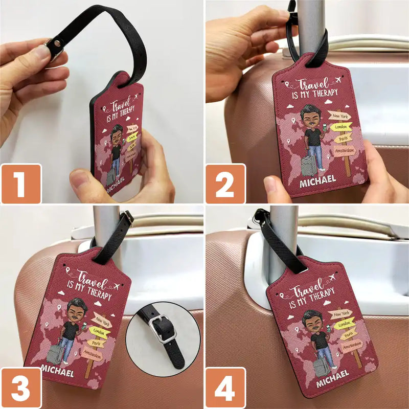 Adventure Awaits Travel Is My Therapy - Personalized Luggage Tag