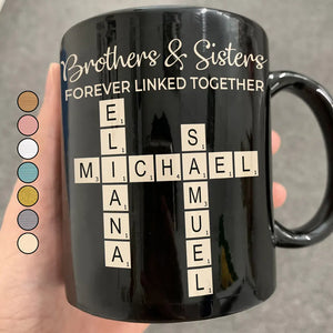 Celebrate the bond of brothers and sisters with the Sibling Brothers & Sisters Forever Linked Together Crossword Scrabble - Personalized Mug, a meaningful and sentimental gift for Sisters, Besties, Siblings, and Brothers on Thanksgiving, Christmas, birthdays, and anniversaries. This personalized mug serves as a unique reminder of the unforgettable connection between siblings, making it a thoughtful choice for any occasion.