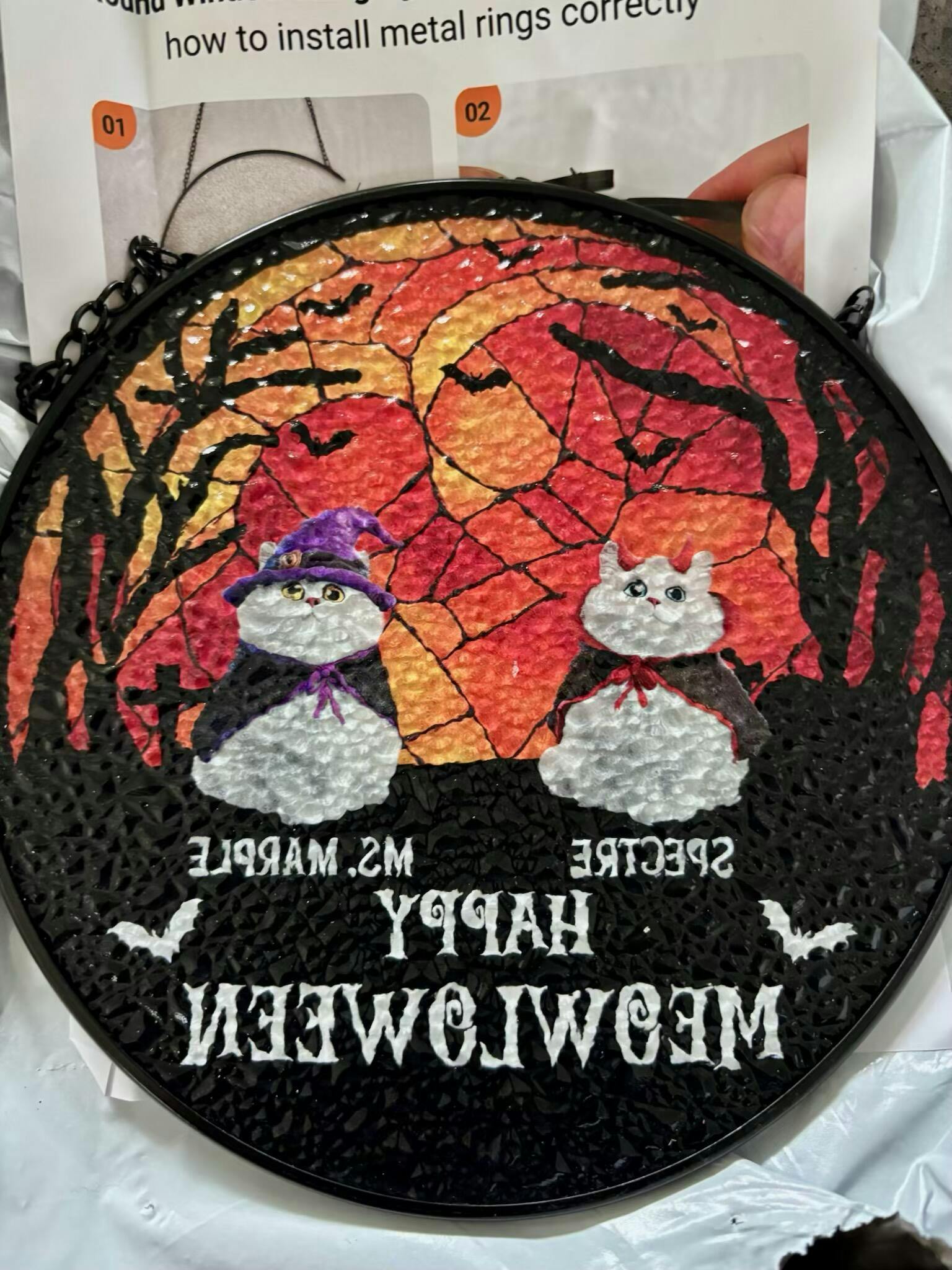 Happy Meowloween Halloween Pets - Personalized Stained Glass Window Hanging Suncatcher