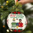 First Christmas As A Family Of Three - Gift For New Parents - Personalized Custom Circle Ceramic Ornament