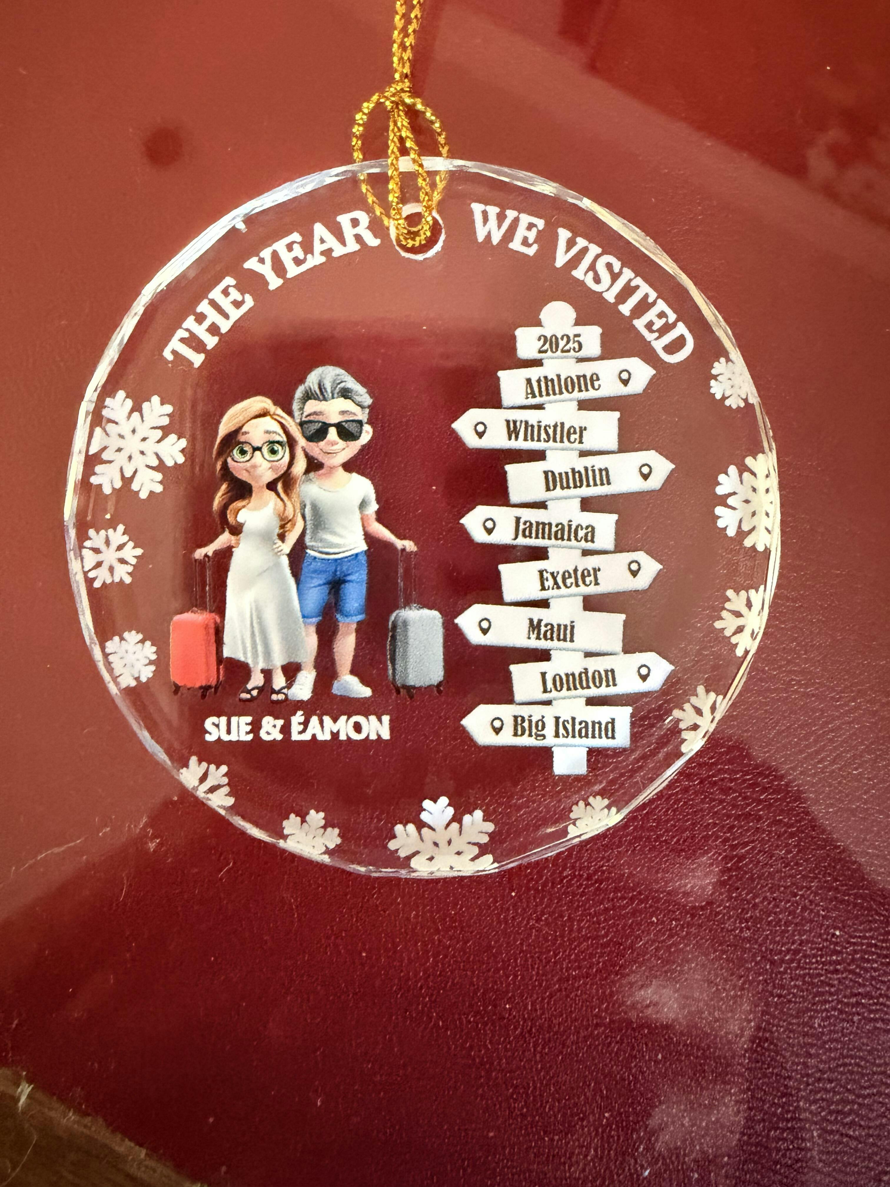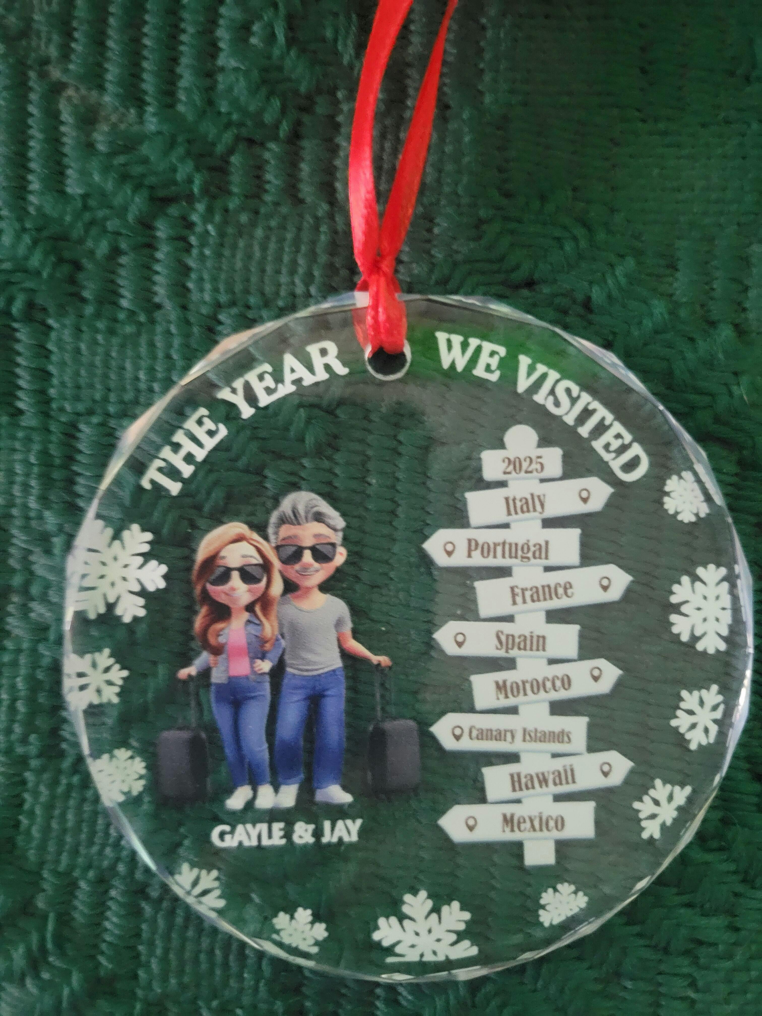 The Year We Visited Travel Ornament - Personalized Circle Glass Ornament