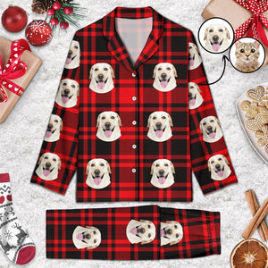 Custom Photo Dog Cat Face - Gift For Pet Lovers - Personalized Long Pajamas Set