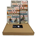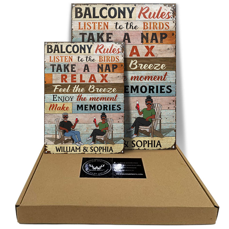 Deck Rules Listen To The Birds Husband Wife Couple - Backyard Sign - Personalized Custom Classic Metal Signs