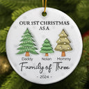 First Christmas As A Family Of Three - 3D Inflated Effect Printed Ornament, Personalized Circle Ceramic Ornament