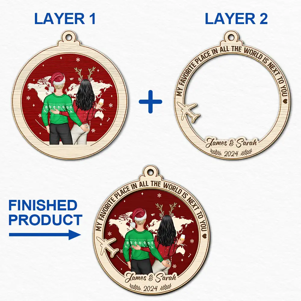 Celebrate love and togetherness with the My Favorite Place Is Next To You World Map - Personalized 2-Layered Wooden Ornament, a perfect gift for couples, husbands, wives, moms, dads, boyfriends, and girlfriends on Valentine’s Day, Mother’s Day, Father’s Day, Thanksgiving, Christmas, birthdays, and anniversaries. This unique ornament captures a heartfelt sentiment, making it an unforgettable keepsake for anyone deeply cherished.