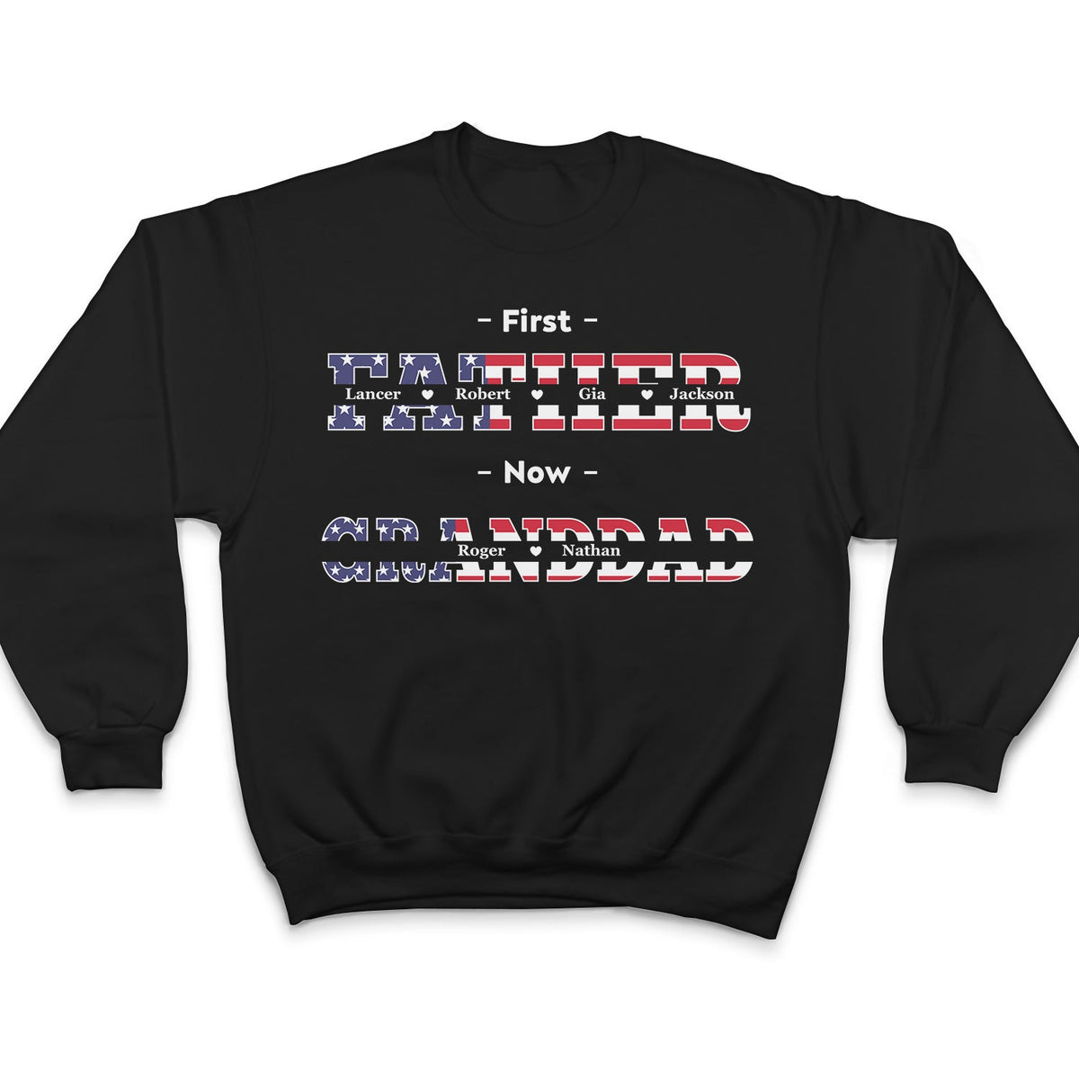 First Dad Now Papa Stars And Stripes - Gift For Father, Grandpa, Grandfather - Personalized T Shirt
