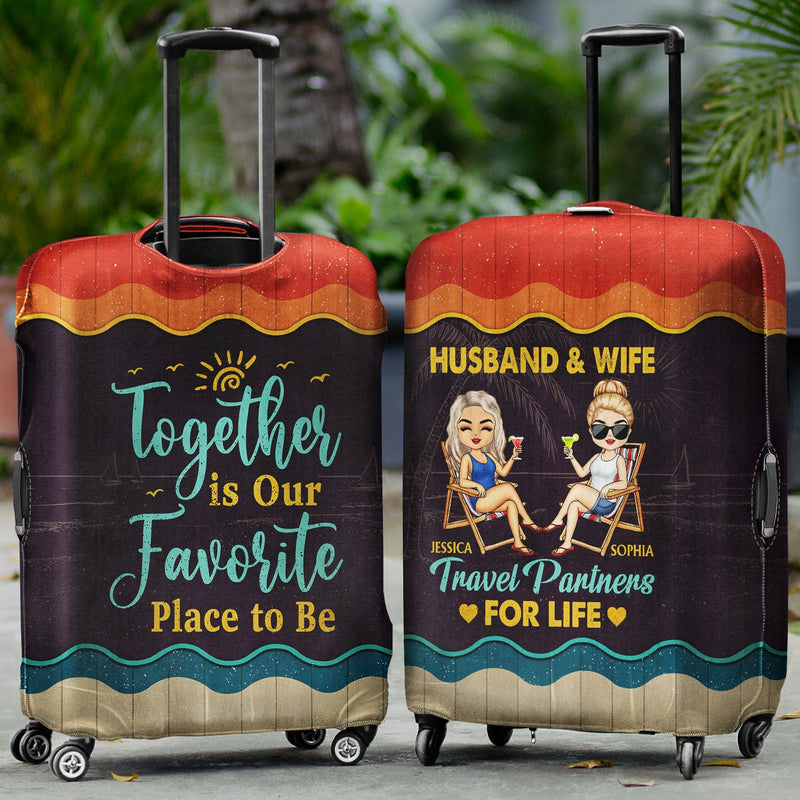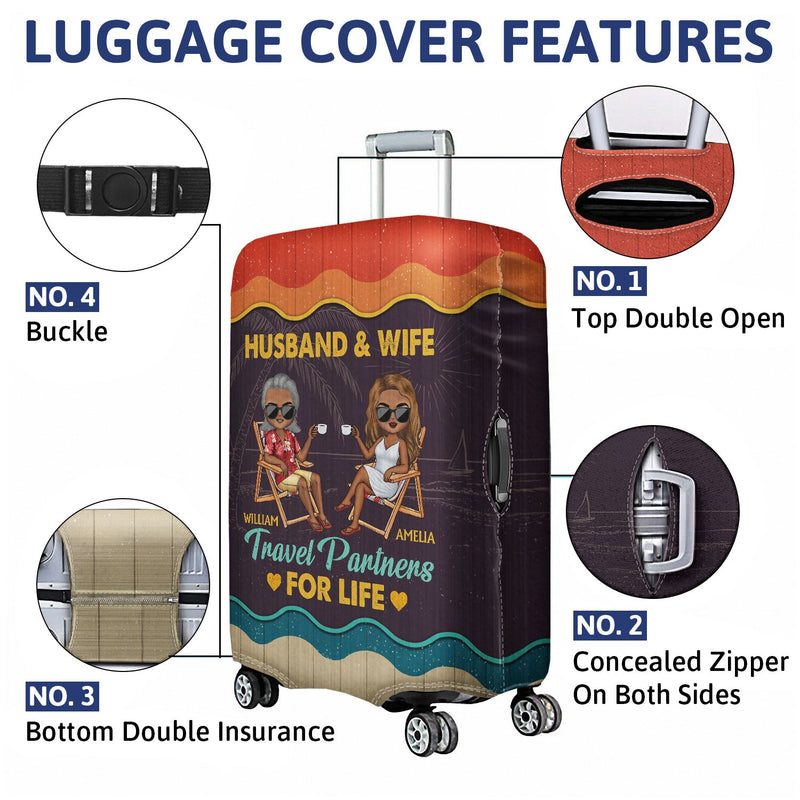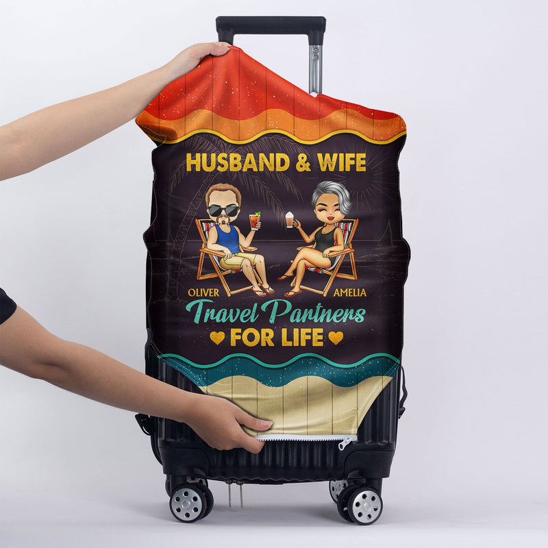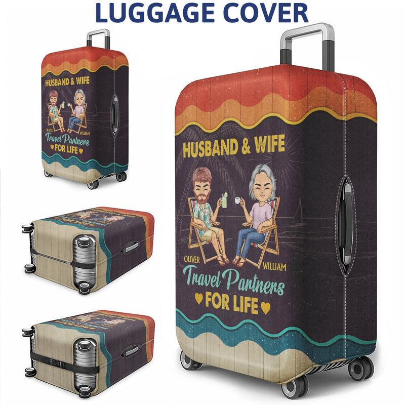 Husband And Wife Travel Partners For Life Beach Traveling Couple - Anniversary, Birthday, Funny Gift For Spouse, Husband, Wife, Family - Personalized Custom Luggage Cover