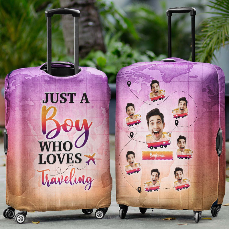 Custom Photo Just A Girl Boy Who Loves Traveling - Gift For Traveling Lovers - Personalized Custom Luggage Cover