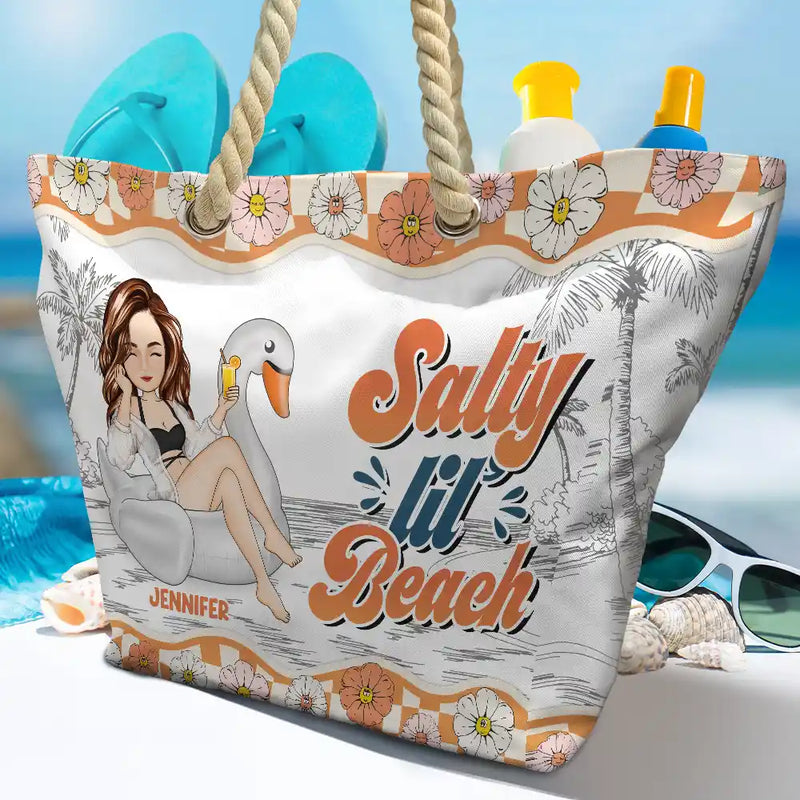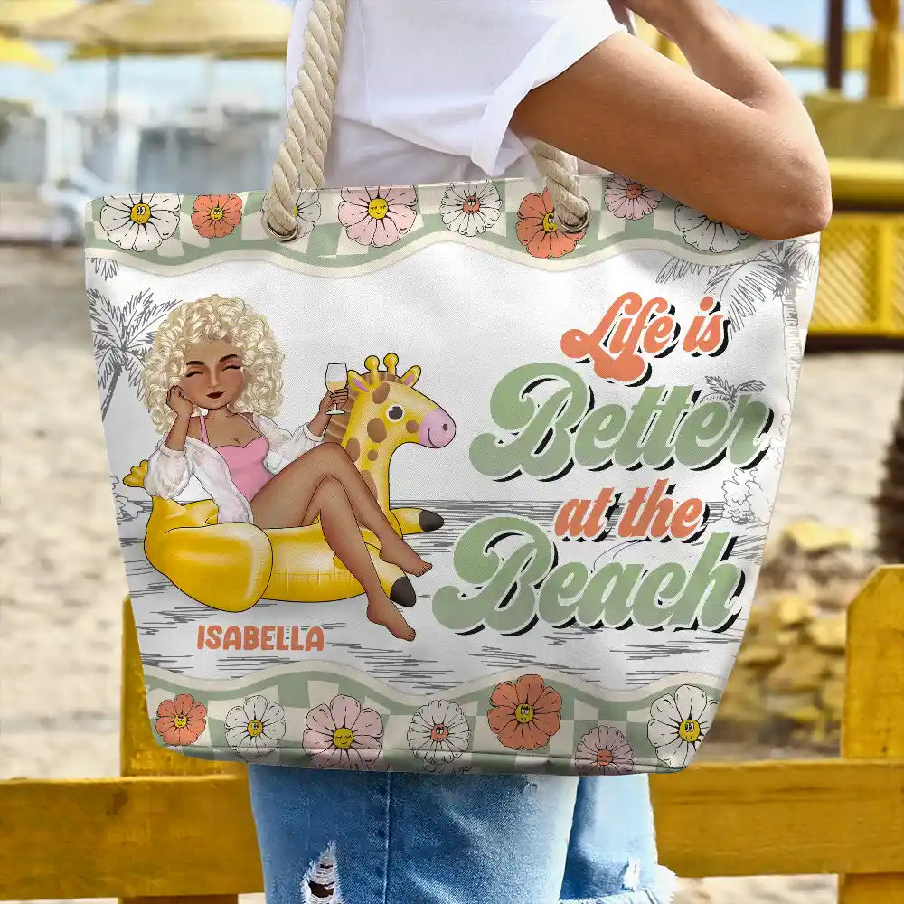 Flamingo Float Just A Girl Who Loves Beach - Personalized Beach Bag