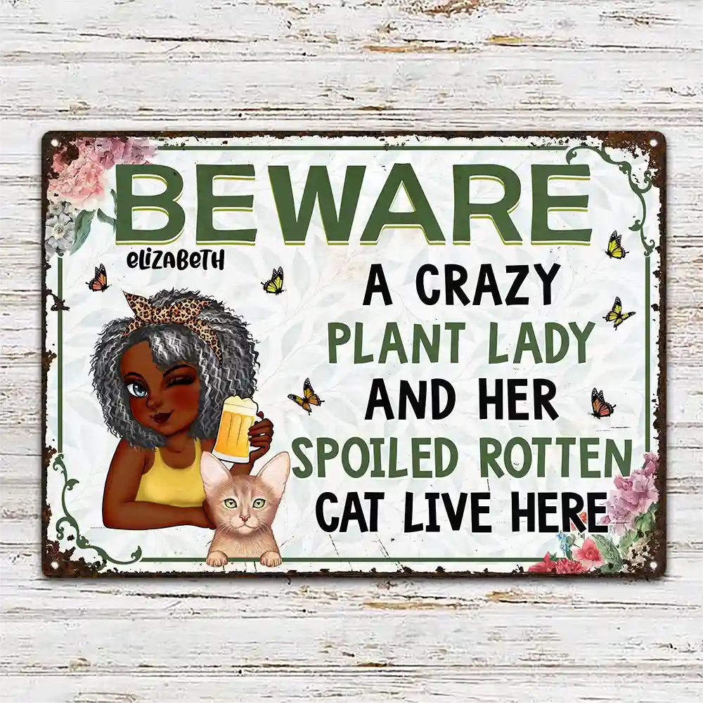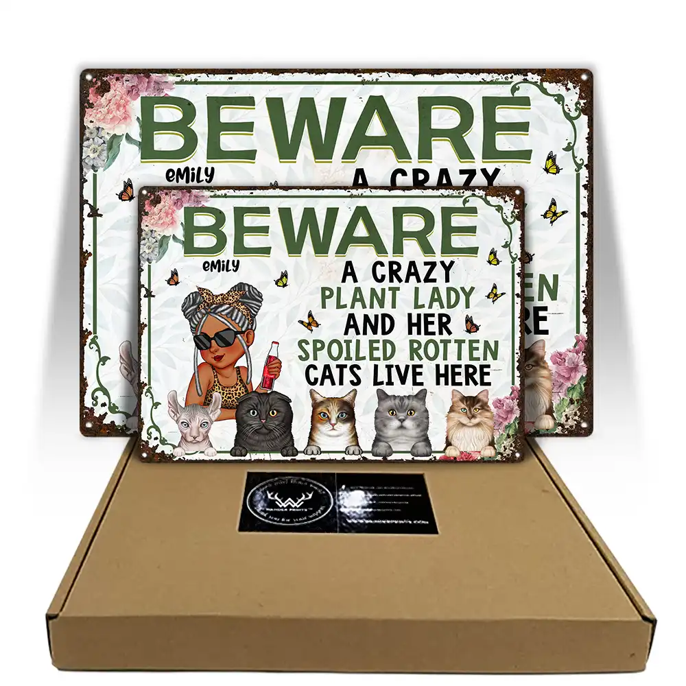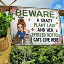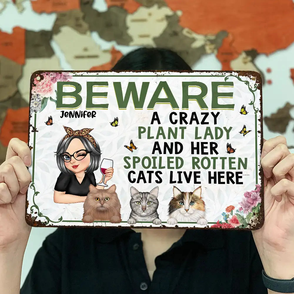 A Crazy Plant Lady & Her Spoiled Rotten Cats Live Here - Personalized Classic Metal Signs