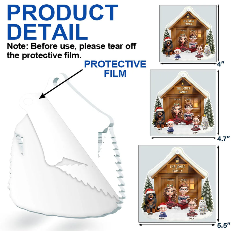 Christmas Sitting Family Parents Kids Pets - Personalized Custom Shaped Acrylic Ornament