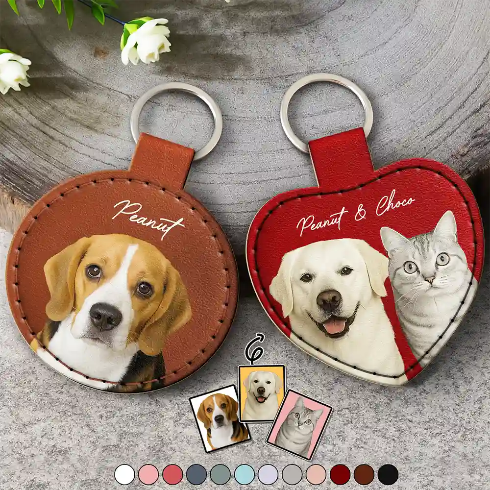 Custom Photo Dog Cat Pet Portrait - Personalized Custom Shaped Leather Keychain With Stitching