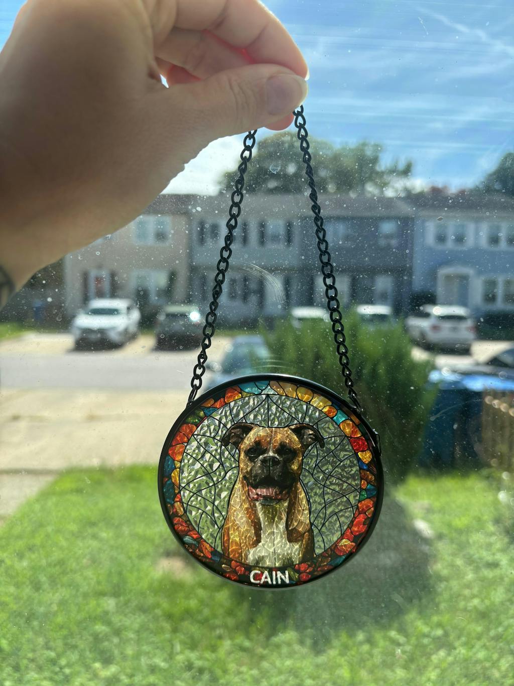 Custom Photo Portrait Dog Cat Family - Personalized Stained Glass Window Hanging Suncatcher