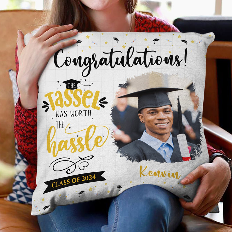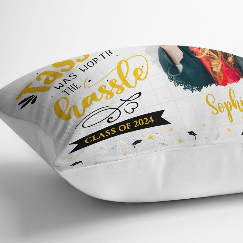 Custom Photo The Tassel Was Worth The Hassle - Graduation Gift - Personalized Pillow