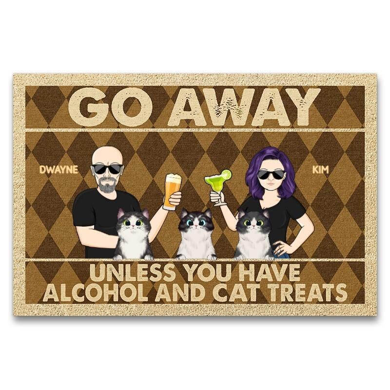 Go Away Unless You Have Alcohol And Cat Treats Couple Husband Wife - Gift For Cat Lovers - Personalized Custom Doormat
